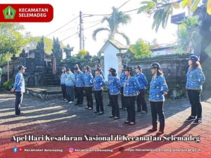 ASN Kecamatan Selemadeg mengikuti apel Hari Kesadaran Nasional yang dilaksanakan di halaman depan Kantor Kecamatan Selemadeg, Senin(19/1). Apel dipimpin langsung...