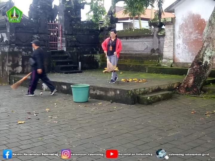 Bersih-bersih di Halaman Kantor Camat Selemadeg