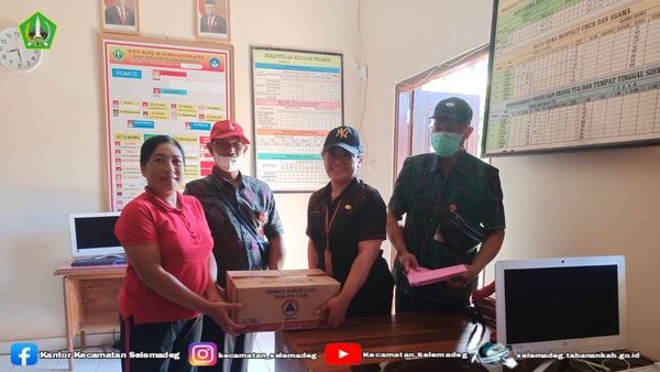 Selasa, 13 Desember 2022 Kasi Trantib Kecamatan Selemadeg beserta staf menyerahkan Bantuan Logistik dari BPBD Kabupaten Tabanan untuk Penanganan Covid- 19 yang diserahkan kepada Kecamatan Selemadeg, SMP N 1 Selemadeg beserta SMP N 2 Selemadeg dengan masing-masing instansi menerima bantuan logistik berupa sabun cuci tangan 24 botol.