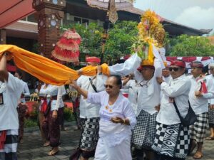 Ngebejian Pujawali Jelih Nugtugan Karya Ngenteg Linggih di Kantor Bupati Tabanan