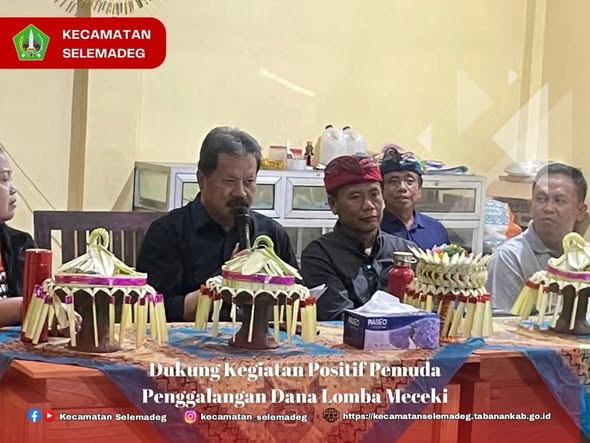 Camat Selemadeg mendampingi Wakil Bupati Tabanan menghadiri kegiatan Penggalangan Dana “Lomba Meceki” yang diselenggarakan oleh ST. Surya Kencana, Sabtu (21/2). Kegiatan ini bertempat di Balai Banjar Adat Gamongan, Desa Selemadeg.