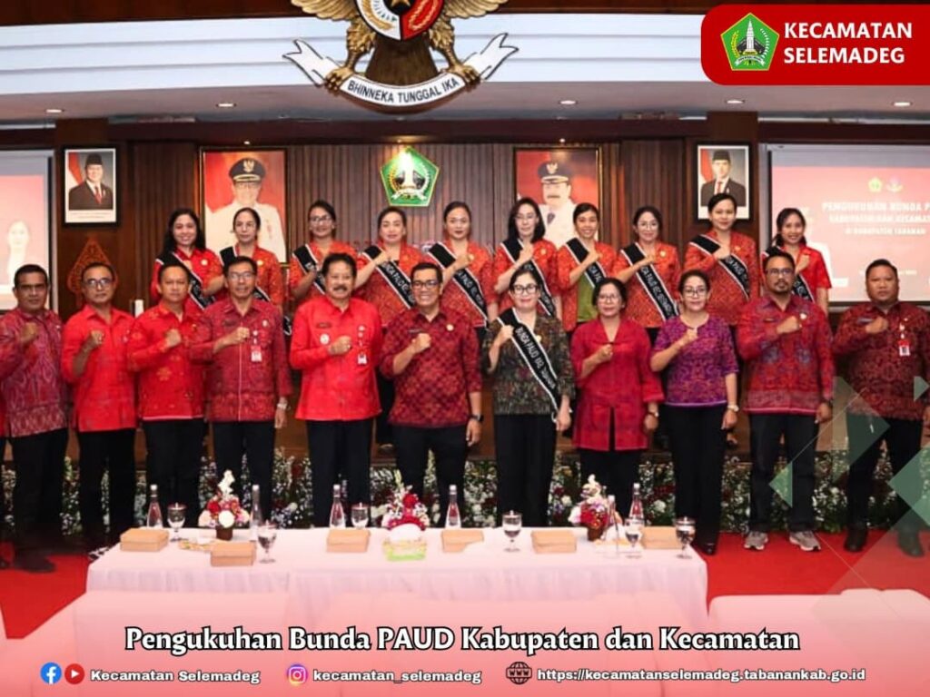 Ny. Rai Wahyuni Sanjaya, dikukuhkan secara resmi sebagai Bunda PAUD Kabupaten Tabanan oleh Bupati Tabanan, Dr. I Komang Gede Sanjaya, S.E. dengan penandatanganan berita acara, pemasangan selempang, serta penyematan pin kepada Ny. Rai Wahyuni Sanjaya, berlangsung di Ruang Rapat Utama Jayaning Singasana Kantor Bupati Tabanan, Senin, (15/9).