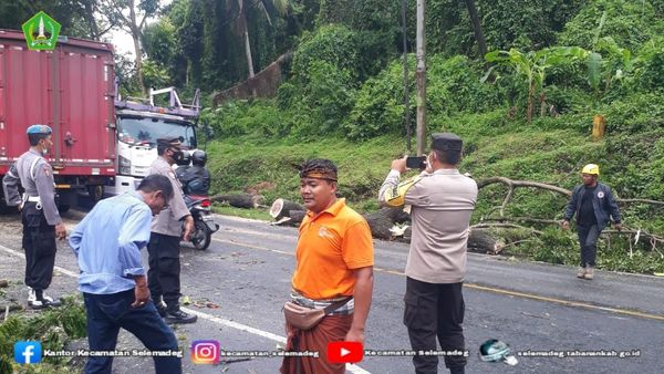 Pohon Tumbang Akibat Angin Kencang di Jalan Utama Denpasar- Gilimanuk, Bonian