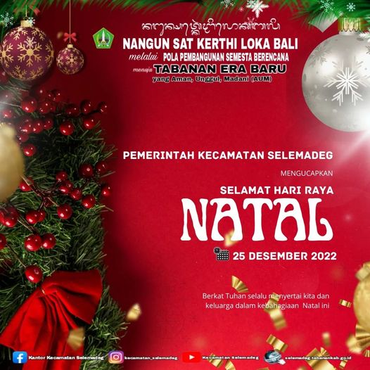 Segenap Keluarga Besar Kecamatan Selemadeg Mengucapkan “Selamat Hari Raya Natal 25 Desember 2022”