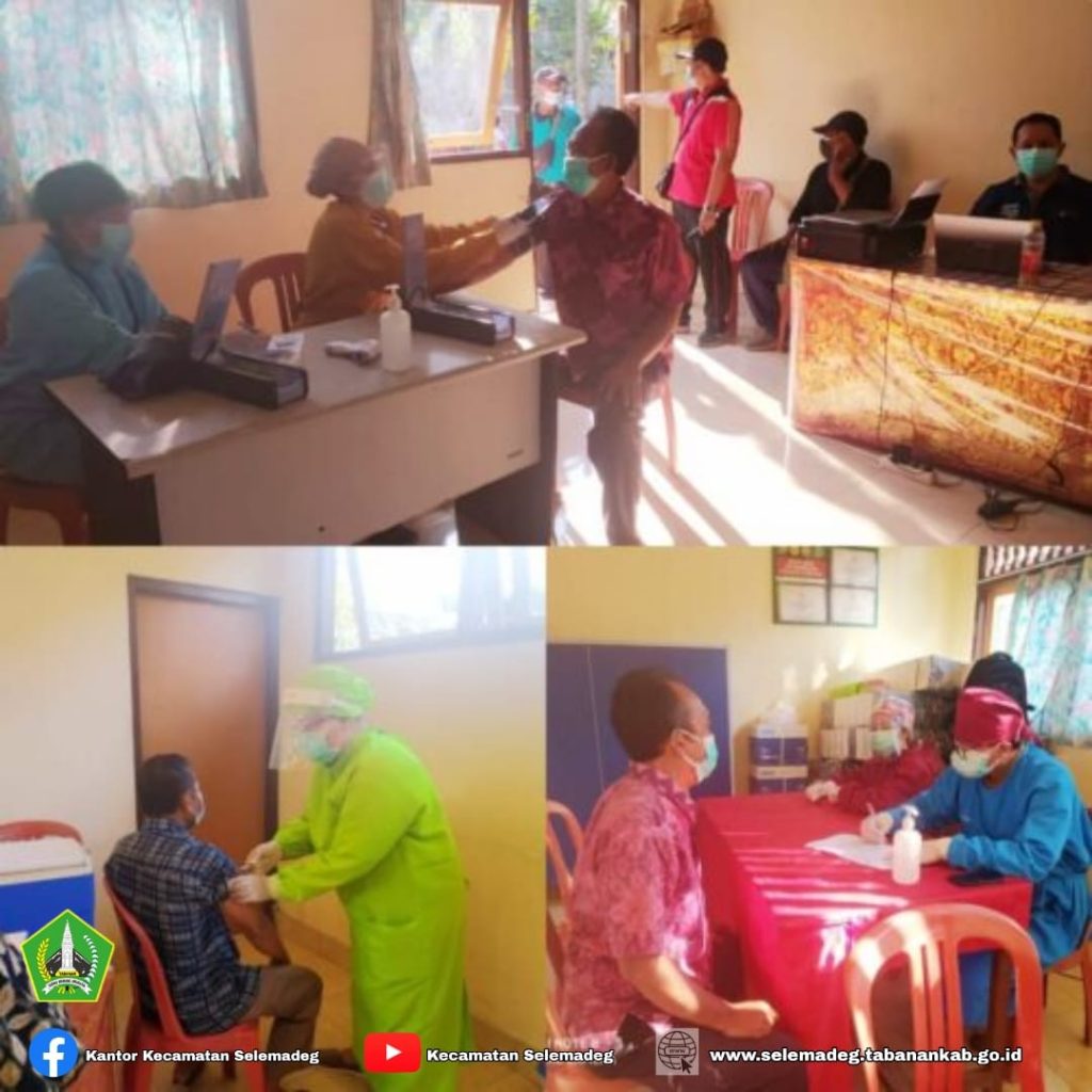 Pada hari ini Senin 24 Mei 2021, Bapak Camat Selemadeg yang didampingi Sekretaris Kecamatan, Kasi Pemerintahan, Kasi Kesejahteraan Sosial, Plt. Kasi Ketentraman dan Ketertiban, beserta staf ikut bersama-sama mendampingi Tim Vaksinator dari UPT Puskesmas Selemadeg melakukan kegiatan vaksinasi massal di Desa Antap dan Desa Serampingan. Vaksinasi massal ini menggunakan Vaksin Dosis I Astrazeneca dengan sasaran para lansia. Jumlah peserta vaksinasi di Desa Antap sebanyak 231 orang dan jumlah peserta vaksinasi.